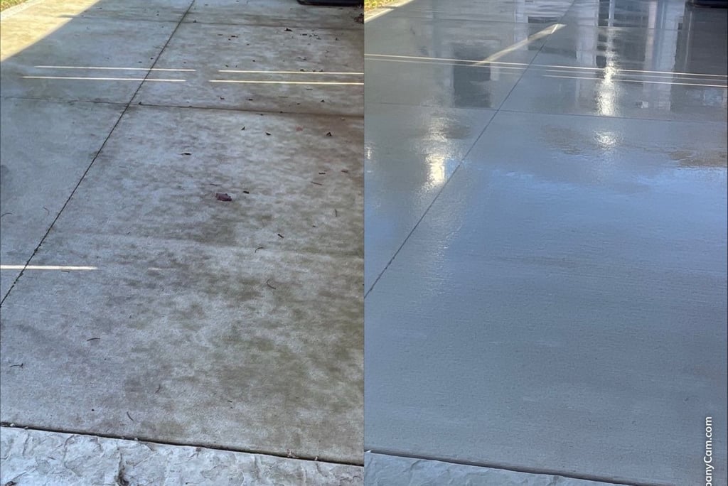 Professional concrete cleaning removes harmful contaminants and restores the clean, uniform appearance of your concrete—preparing it for proper sealing and long-term protection.